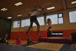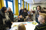 Nach der Begrüßung durch die Schulleiterin Frau Schröder und Liedbeiträgen der Klassen 5a und 5d, begaben sich die Eltern mit Ihren Kindern auf einen Rundgang durch die Schule. Dabei konnten sich die Kinder in der Sporthalle auf dem Trampolin oder am Kletterseil sportlich betätigen. Im Kunstraum wurde fleißig gemalt, gehämmert und gesägt. Neben der Besichtigung der Übermittagbetreuung, gab es in den naturwissenschaftlichen Räumen Interessantes zu entdecken. Für das leibliche Wohl sorgten Schülerinnen der Klasse 10a.